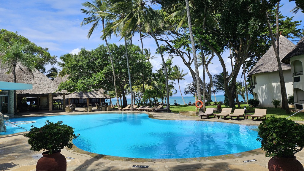 Langsam verändert sich die Umgebung. Die trockene Savanne wird grüner, dichter, tropischer. Diese Zugfahrt ist nicht nur eine bequeme Verbindung, sondern ein leiser, stimmungsvoller Abschied von der Savanne – und gleichzeitig die perfekte Überleitung zurück ans Meer, diesmal ins Leopard Beach Resort & Spa. Hier trifft Komfort auf Natur, und die Erlebnisse aus der Savanne scheinen fast surreal, während man wieder den warmen Sand unter den Füßen spürt. Doch auch hier wartet noch ein kleines Abenteuer: eine Radtour durch von Diani Beach – allerdings nicht bei Sonnenschein, sondern im strömenden Regen. Die Wege werden matschig, die Kleidung durchnässt, doch genau das macht den Moment unvergesslich. Kinder winken lachend am Straßenrand, und trotz des Regens liegt eine besondere Leichtigkeit in der Luft.