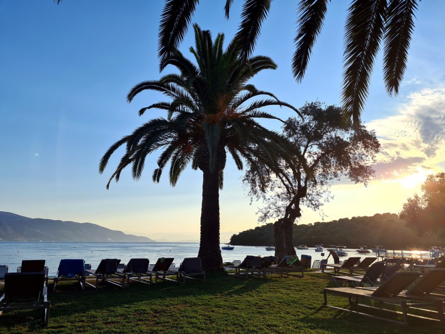 Die ersten beiden Tage wurde unter Palmen am Strand gechillt – denn hier findet jeder ein halbschattiges Plätzchen am Strand, wo es sich den ganzen Tag herrlich auf der Liege lümmeln lässt. Doch wenn man schon so weit fliegt, muss man sich ja auch etwas von der Gegend ansehen und der Mietwagen stand bereits wartend vor der Tür. Unser erster Halt war das Achillion – lange Zeit als Wohnsitz der Kaiserin Sissi, welche diese traumhafte Insel auch sehr liebte. Auf dem Rückweg gab es Erfrischungen im Café Nisos. Bei leckeren Waffeln hatten wir den perfekten Blick auf die Start und Landebahn von Korfu, was durchaus ein spektakuläres Erlebnis ist!